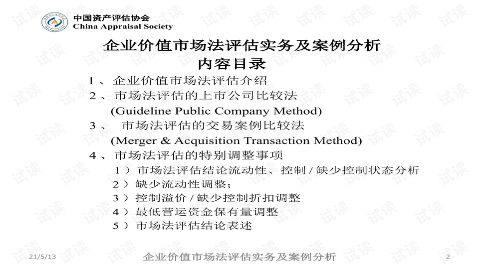 在实际应用中,UEE77.543清新版涵盖了多个评估方法,比如市场比较法、收益法及成本法等。根据不同的资产类型,例如不动产、股票或无形资产,评估师需要灵活选择合适的评估方法。
